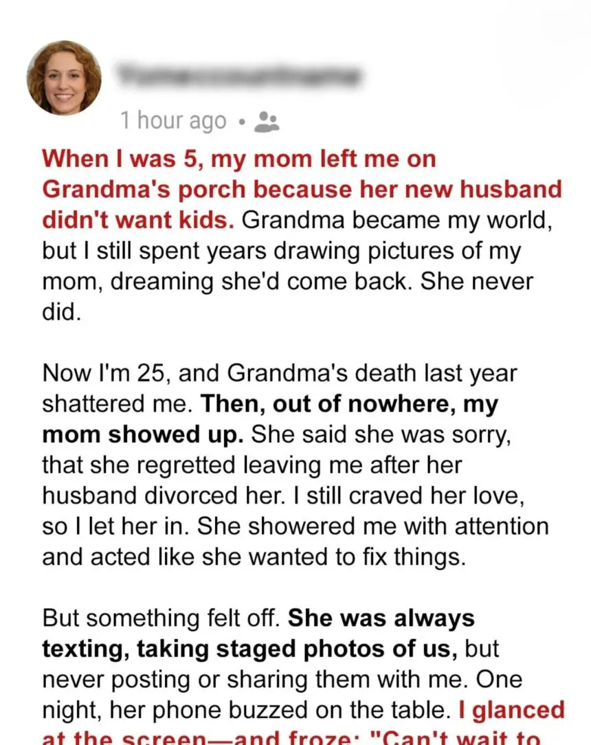 “Sweetie, Mark doesn’t want children in his new home,” Mom said, her voice wobbling. “But I love you very much. This is just… the best thing for everyone right now.”