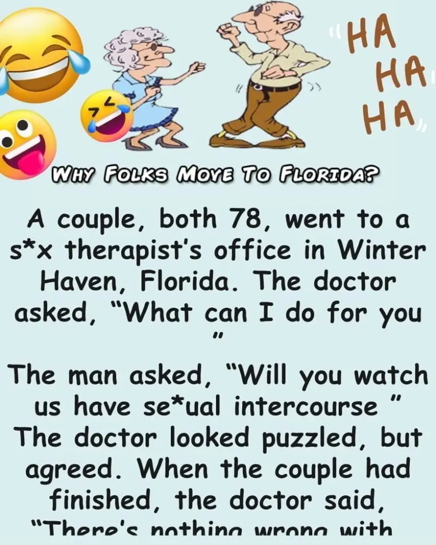 A couple, both 78, went to a sex therapist’s office in Winter Haven, Florida. The doctor asked, “What can I do for you ”
