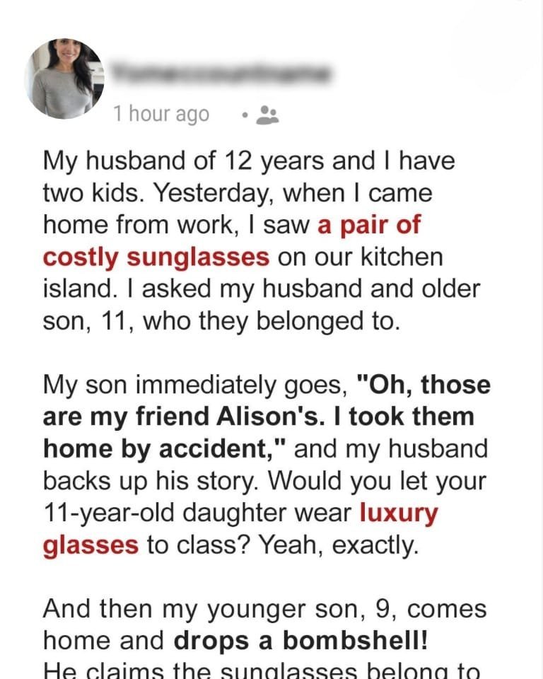 All it took was one pair of expensive sunglasses to wash away everything I thought I knew about my marriage.