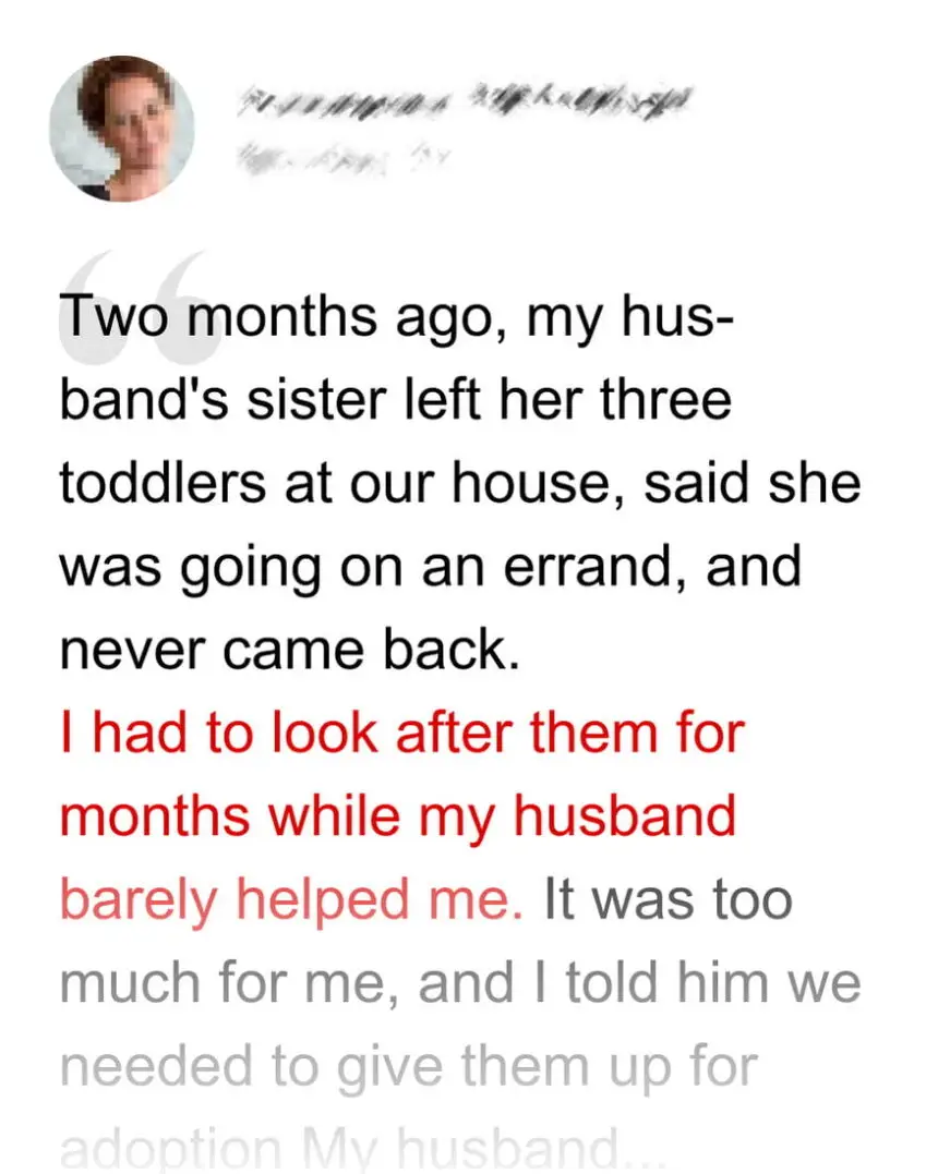 A woman found herself in a difficult situation after her irresponsible sister-in-law left three children in their home and ran away.